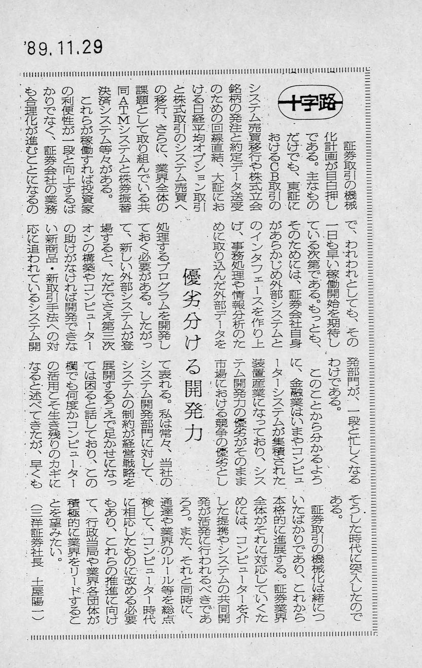 1989年の新聞記事。