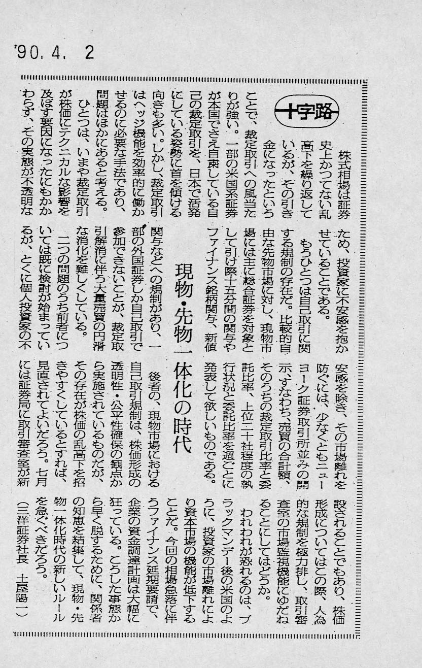 1990年、証券市場は「現物」と「先物」を切り離して考えられなくなりつつあった。